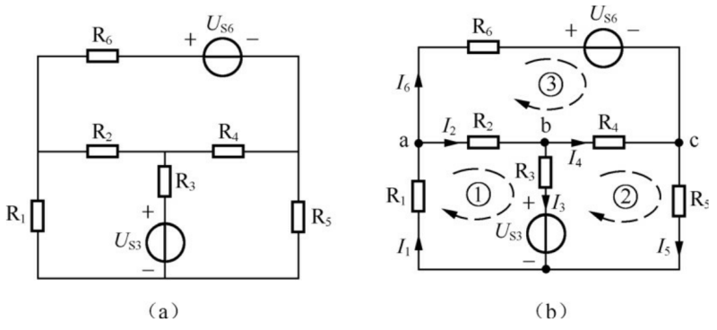 根據KVL,對回路1、2、3列寫電壓方程:聯立并求解上述6個方程即可得到各支路電流。從例4.1可見,應用支路電流法求解b條支路的支路電流,需要解b個方程的方程組,